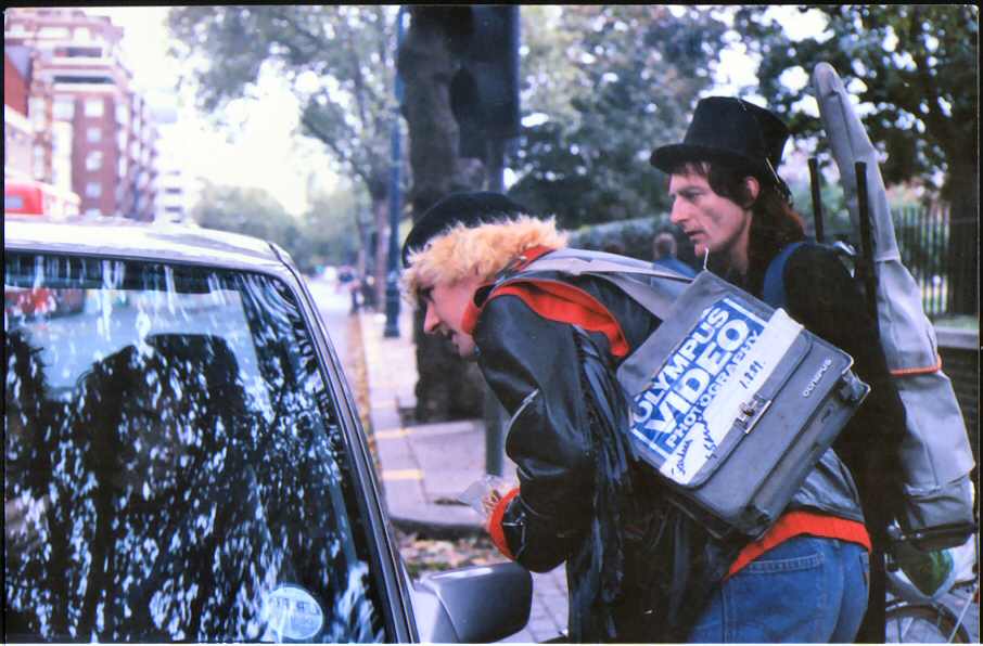 Martin and Nelson in long grass and weeds. Before the tour in 1989