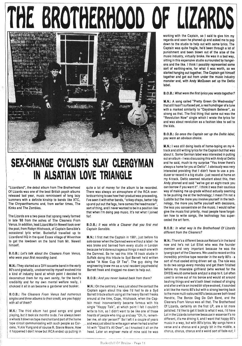 A Brotherhood of Lizards mini site.Written by Martin Newell and Paul Wilkinson. All images and text copyright 2003.