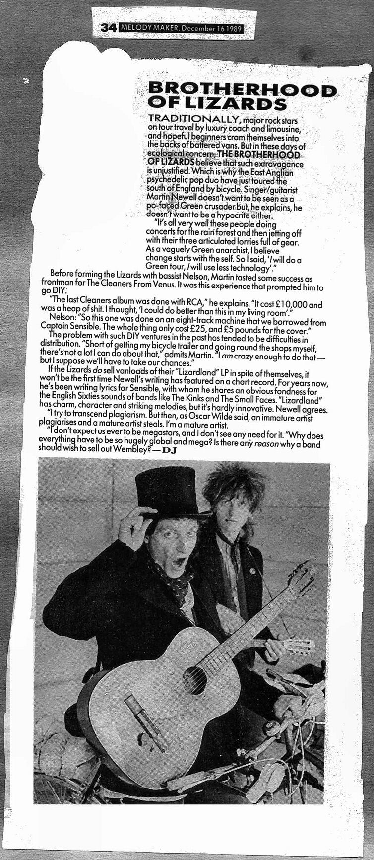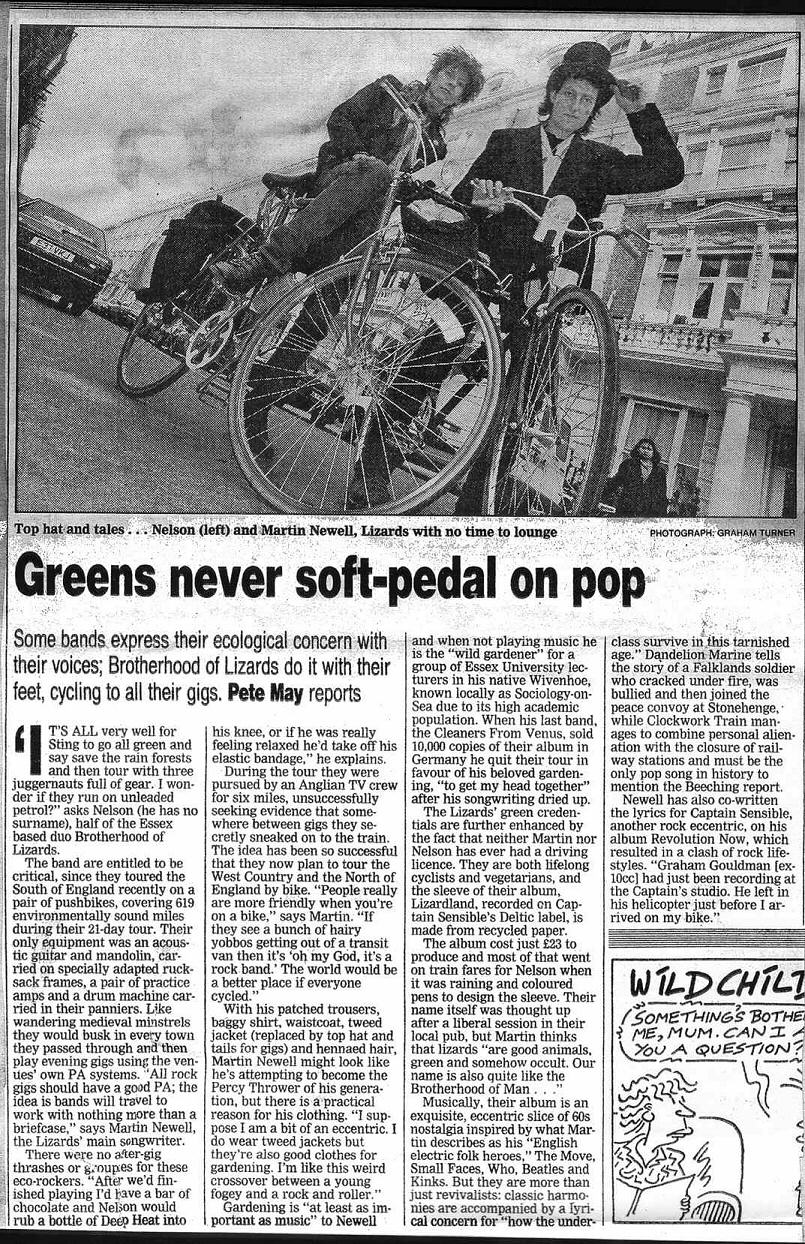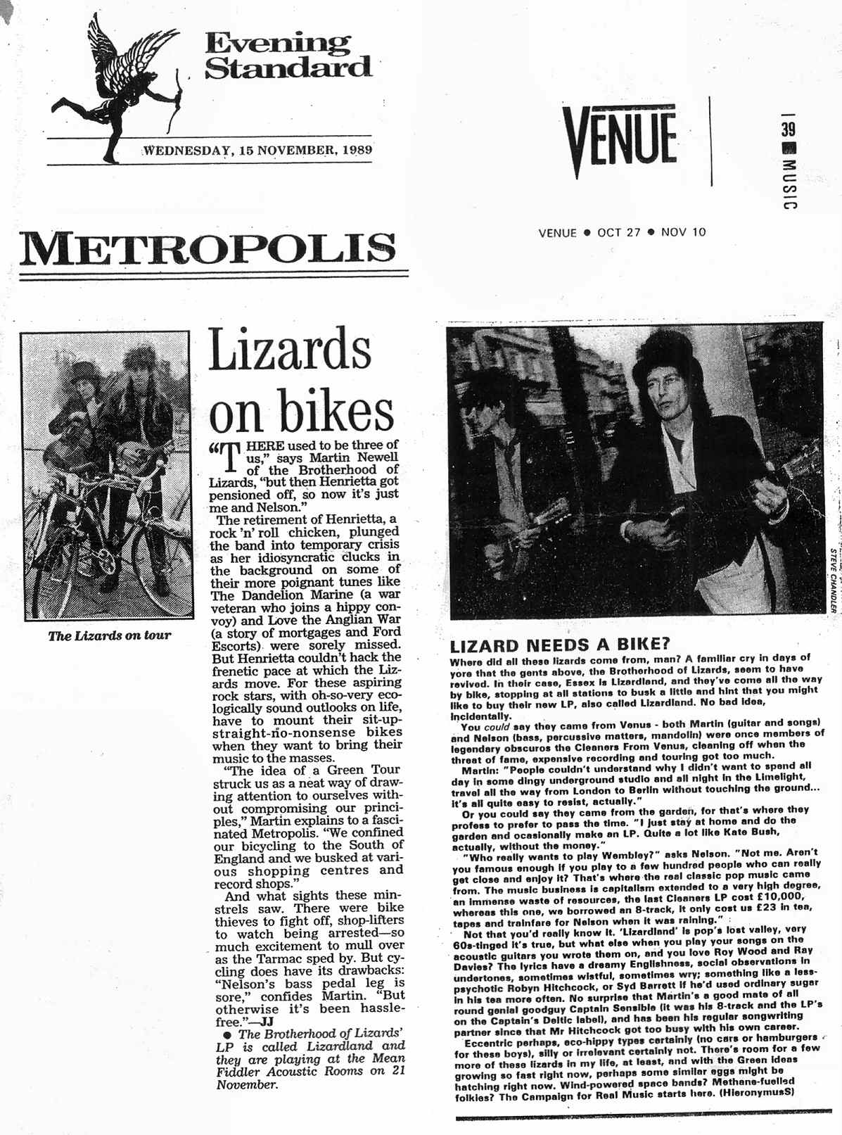 Lizards On Bikes From London Evening Standard 15th Nov 1989